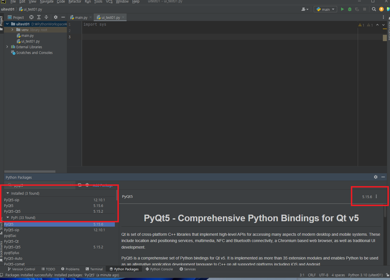 빨간색 네모를 보이면 잘 깔림을 볼 수 있고, 버전도 5.15.6 임을 알 수 있다.